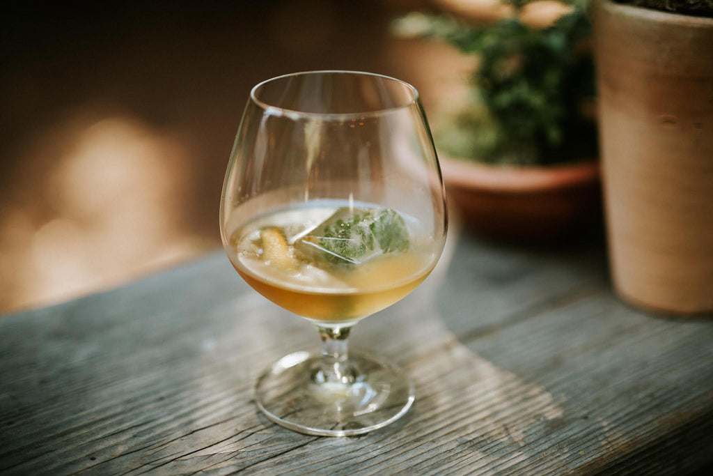 Take one big bunch of fresh mint or, 5 bags of dried mint tea and add to 48 oz. of hot water in a large heat resistant pitcher or 64 oz. ball jar. Let steep for 20-30 minutes. Remove fresh mint or tea bags and add syrup. Chill to a cold temperature either overnight on the counter or, in the fridge for a couple of hours. To serve, pour into a cup filled with ice. Top with bitters. Stir and enjoy! Don't like mint tea? Swap mint for sage, chamomile, lemon verbena, ginger or hibiscus. A blend of Hibiscus and Ginger tea with our California Bay Laurel syrup is our favorite combo on a hot summer day. This recipe can also be made with Iced Coffee!