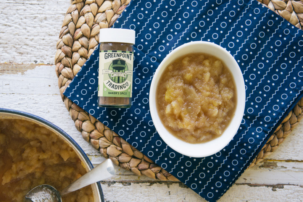 In a saucepan, combine apples, water, sugar, and baker's spice. Cover, and cook over medium heat for 15 to 20 minutes, or until apples are soft. Allow to cool, then mash with a fork or potato masher.