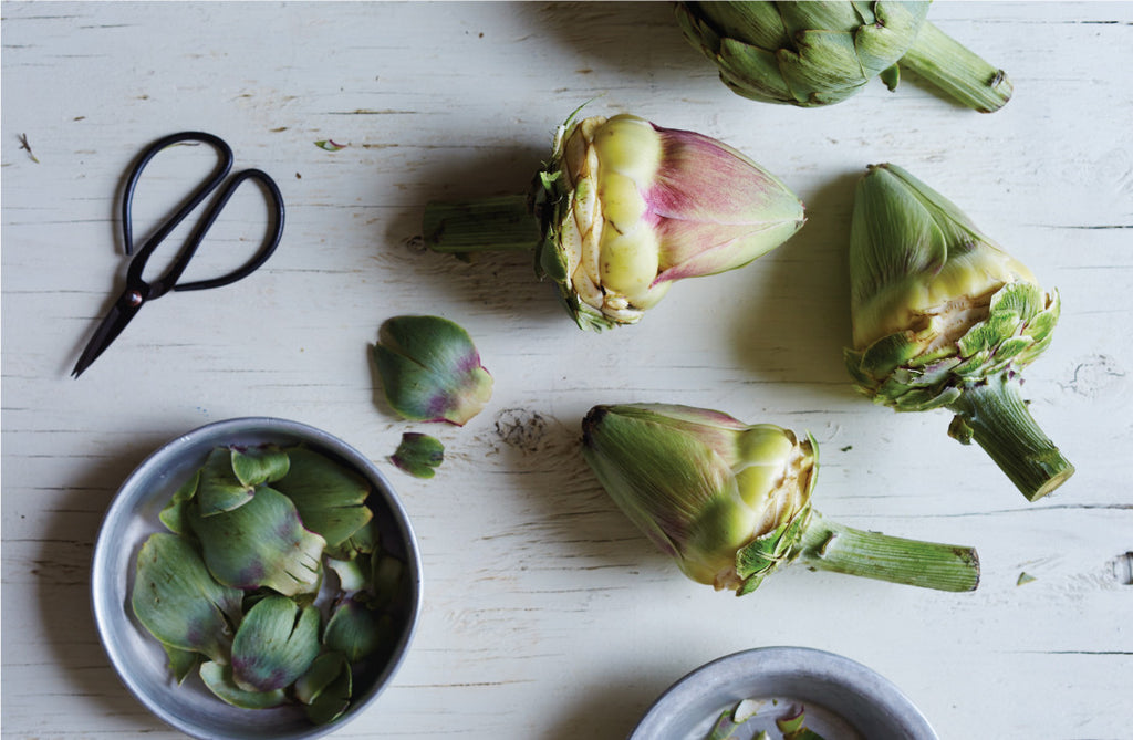 Clean the ramps, remove the roots and roughly chop. Place ramps and chives into a food processor until minced. Then add ¼ cup olive oil, red wine vinegar, salt, and red pepper flakes. Blend until smooth. Serve as a dip for the artichokes.