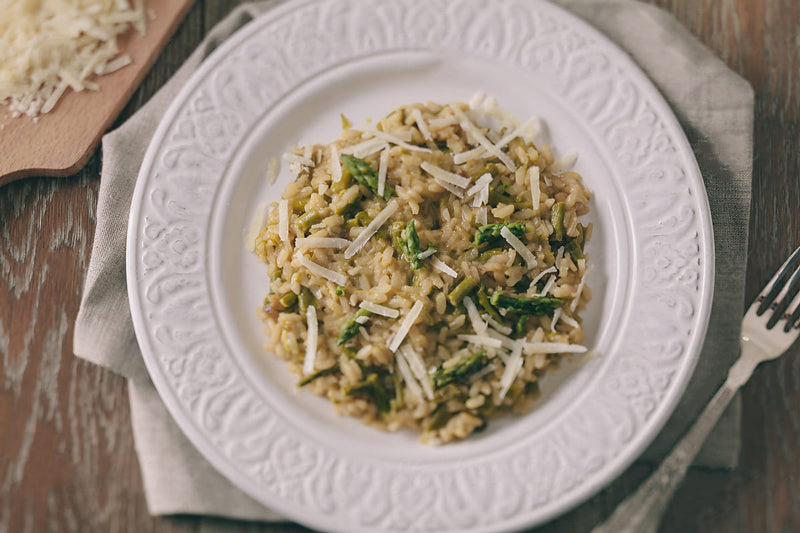 Add ¾ cup hot broth mixture and stir gently and constantly 3 minutes, until risotto becomes creamy. Stir in Parmigiano cheese. Remove from heat, cover, and let stand 5 minutes. Stir in remaining 2 tablespoons butter and lemon juice. Fold in reserved asparagus. To loosen texture of risotto, add more broth, if necessary. Season with sea salt and pepper, sprinkle with more Parmigiano, if desired; and serve immediately.
