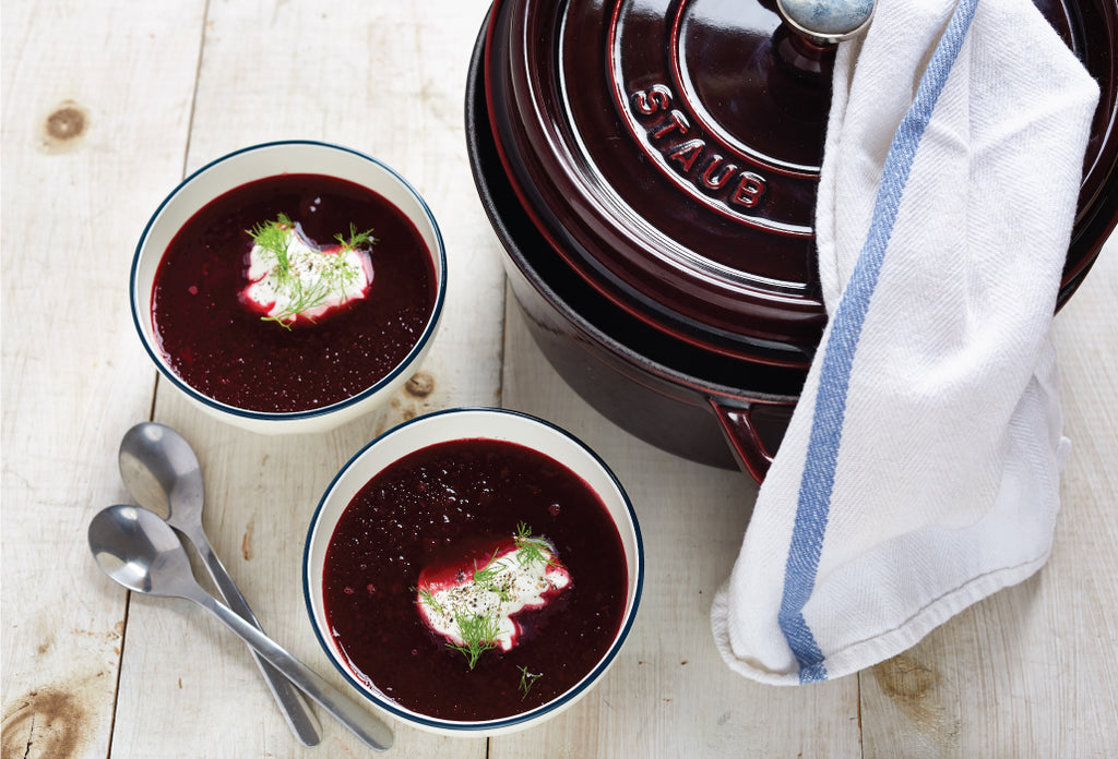 This soup is simple but so satisfying. On a cold winter night the bright color and sweet, earthy flavor of the beets are the perfect way to warm your stomach. Put the beets and fennel in a small soup pot with just enough water to cover. Season with salt and pepper and simmer until the beets are completely tender. Use a blender to puree the soup in batches until completely smooth. Or you can puree half of it, if you like the variation in texture. Serve the soup with a dollop of sour cream or yogurt if desired, a squeeze of lemon and a few fennel fronds.