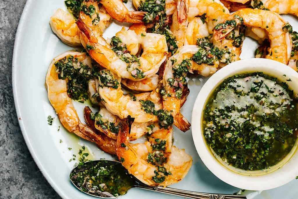 Pat shrimp dry, then season generously with sea salt and pepper.