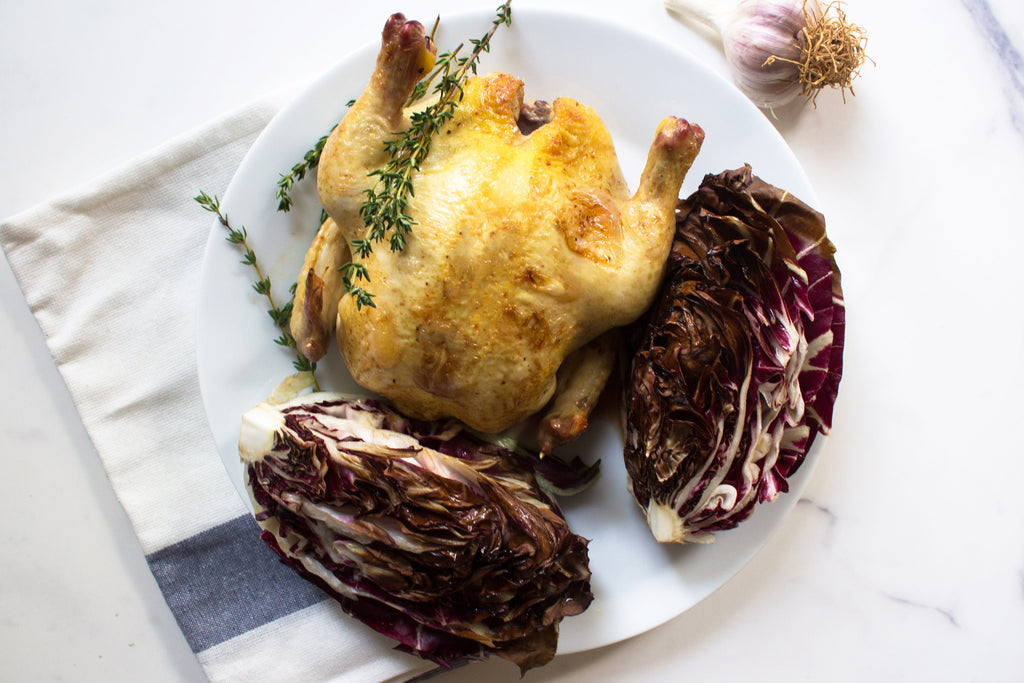 Place the escarole in the pan drippings from the hen and swish it around to coat. Put the pan back in the oven and allow escarole to wilt.