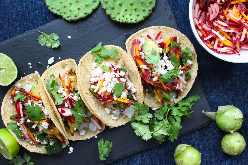 In a small mixing bowl, combine the radish, onion and carrot with the lime juice and 1 tablespoon olive oil. Season with sea salt and pepper, to taste; and set aside.