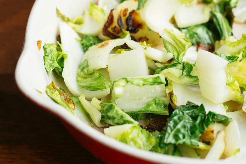 Cut daikon in half lengthwise, then into 1-inch half moons. Halve bok choy lengthwise and rinse well under cold running water, making sure to gently separate leaves to remove any dirt. Then chop into 2-inch pieces.