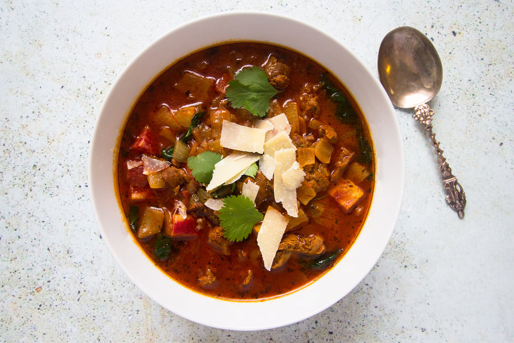 Divide between four bowls and top soup with shaved cheese, if desired.