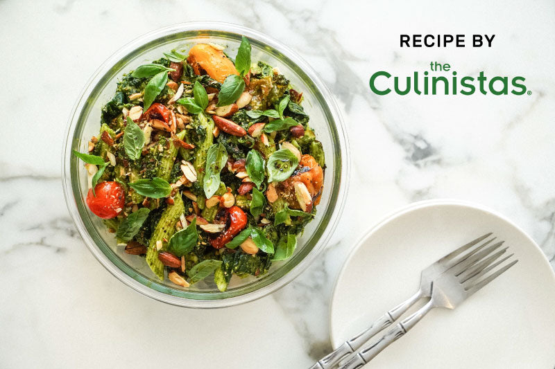 - If you need to thin the pesto, use reserved water from boiling the pasta to do so. It will make the sauce extra creamy.
