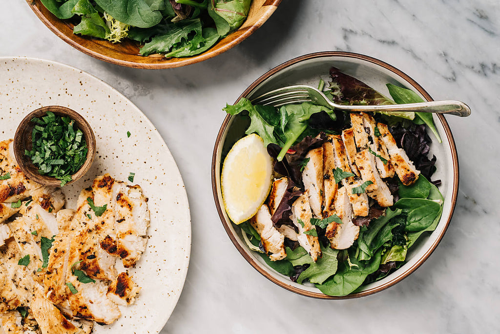 Serve chicken along with pan juices and a lemon wedge over mixed greens.