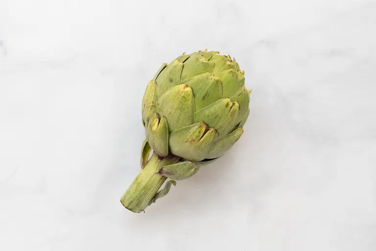 Season artichoke with sea salt and pepper, and nestle 1 garlic clove in center of each half. Drizzle generously with olive oil. Roast in oven 30 minutes. Once done, remove roasted garlic from center of artichoke.
