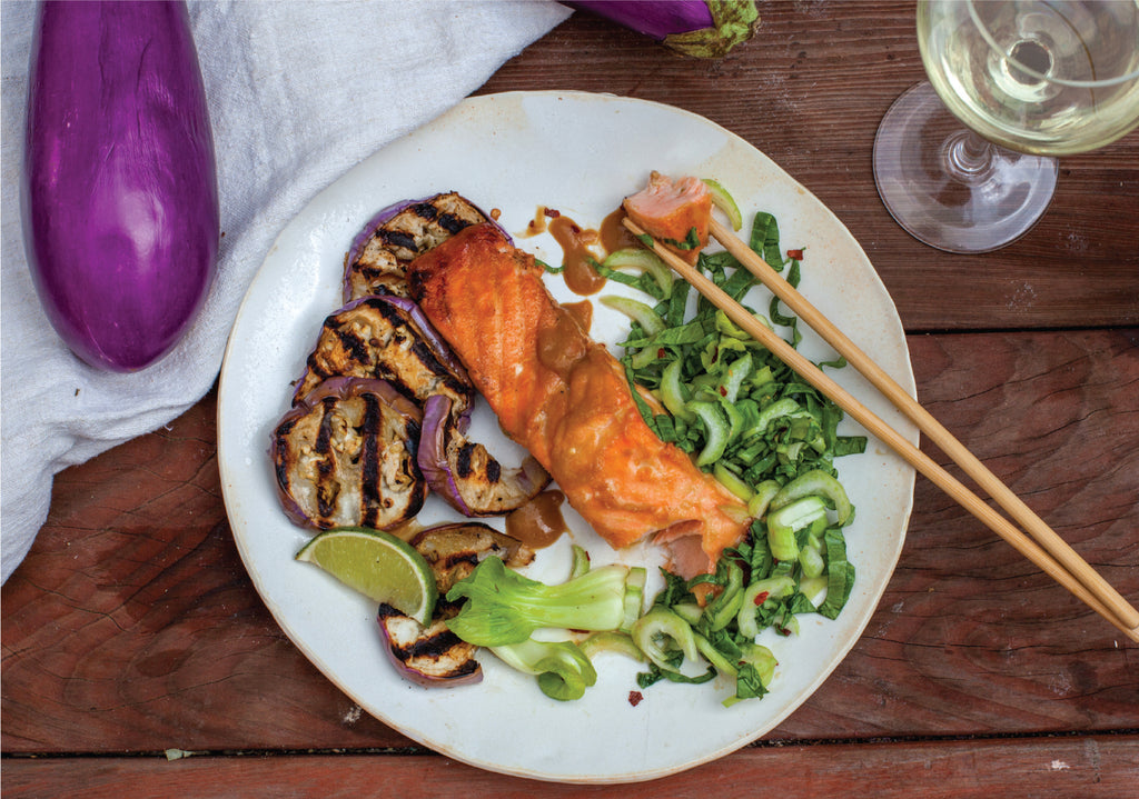 Miso Glazed Salmon with Bac Choi Slaw & Asian Eggplant