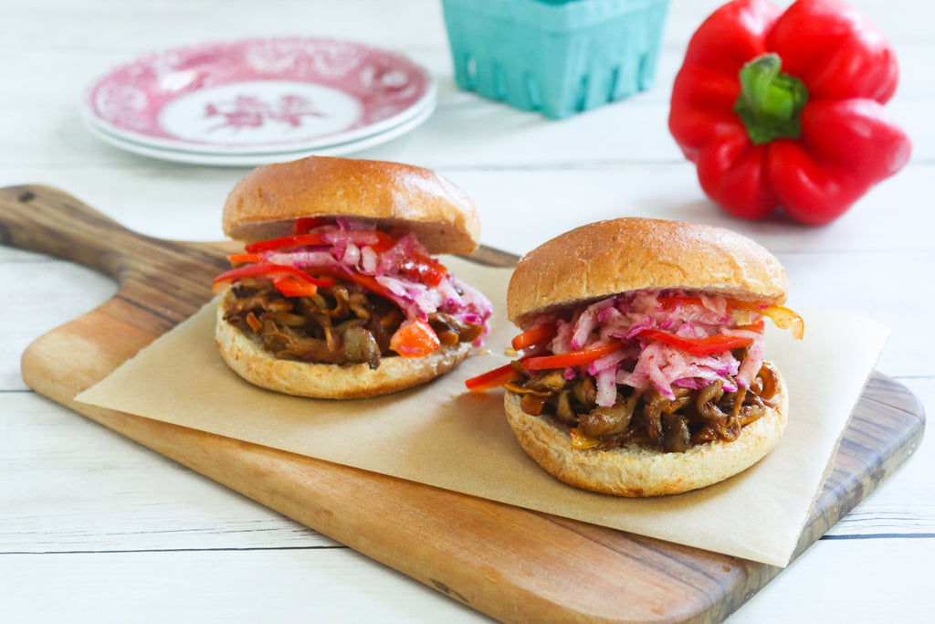Heat remaining 1 tablespoon oil in a large sauté pan over medium high. Transfer cooked mushrooms to pan and add BBQ sauce. Stir and cook for 3 to 5 minutes, until mixture is thick and fragrant.