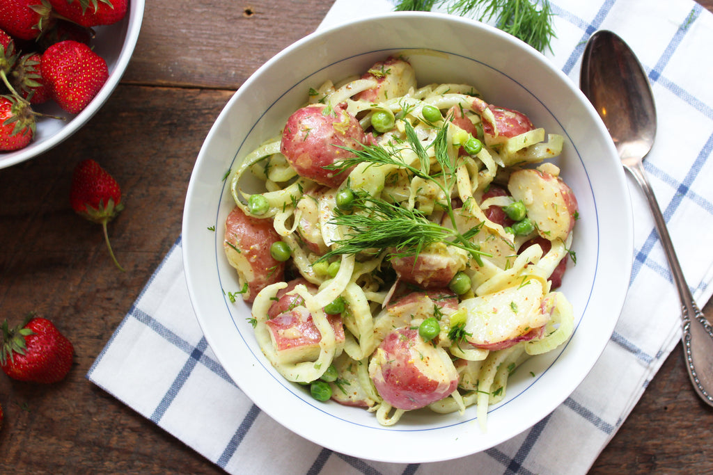 When potatoes are cool enough to handle, cut into halves or quarters. Combine the potatoes, fava beans and fennel with the dressing, season with sea salt and pepper. Can be served warm or cooled in the fridge.