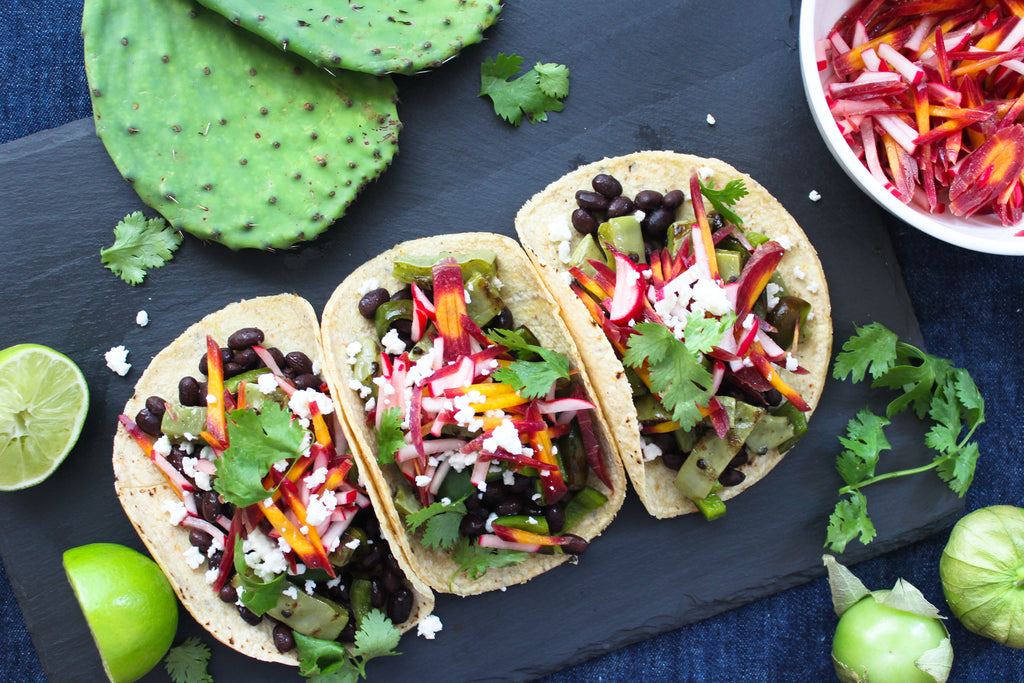 Set a large pan over medium-low heat. Arrange 2-3 tortillas in a single layer. Flip them after 30 seconds or so. As they come off the stove, wrap them in a clean tea towel. Repeat with a second batch. Fill each taco with black beans, if using, and mushroom pepper mixture. Garnish with the slaw, cilantro and another squeeze of lime, if desired. Repeat with the remaining tortillas.
