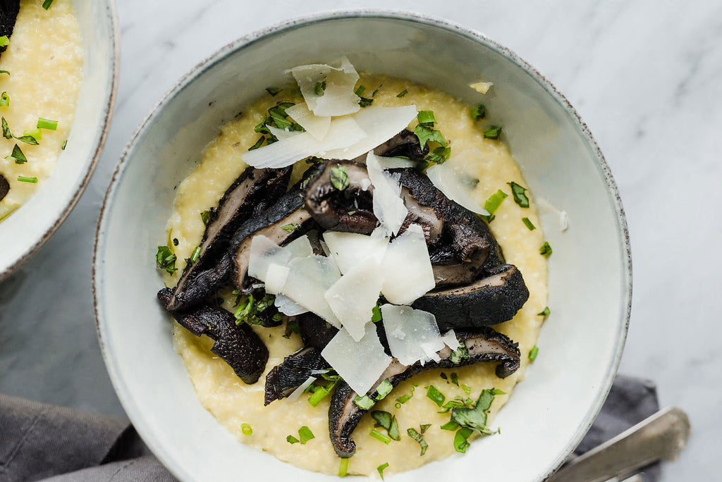 Right before serving, stir milk, Parmesan and butter into polenta. Season with sea salt and pepper.