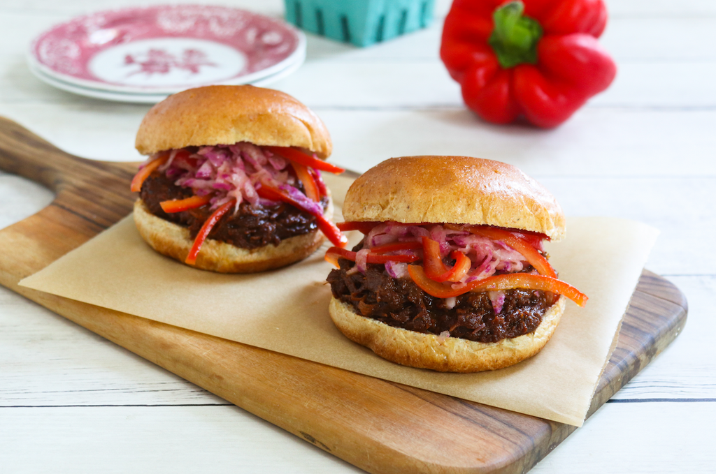 In a small pan, lightly heat the pulled pork. Cut buns in half and toast. Put a large spoonful of pulled pork on each bun, top with the slaw, and enjoy!