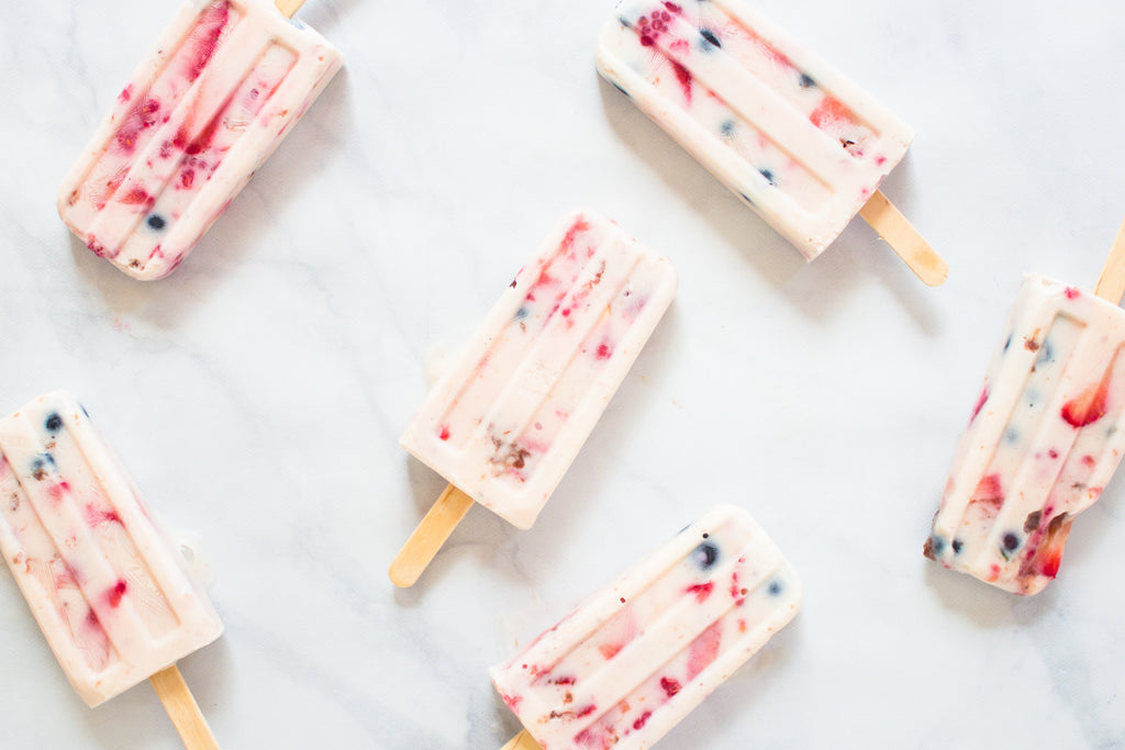 Add frozen cherries to a bowl mash with a potato masher. Add yogurt, jam and blueberries. Lightly fold all the ingredients together. Pour mixture into ice pop molds, leaving a bit of room for the pops to expand. Insert sticks and freeze until solid, 4 to 5 hours. Unmold and transfer to plastic bags for storage; or serve at once.