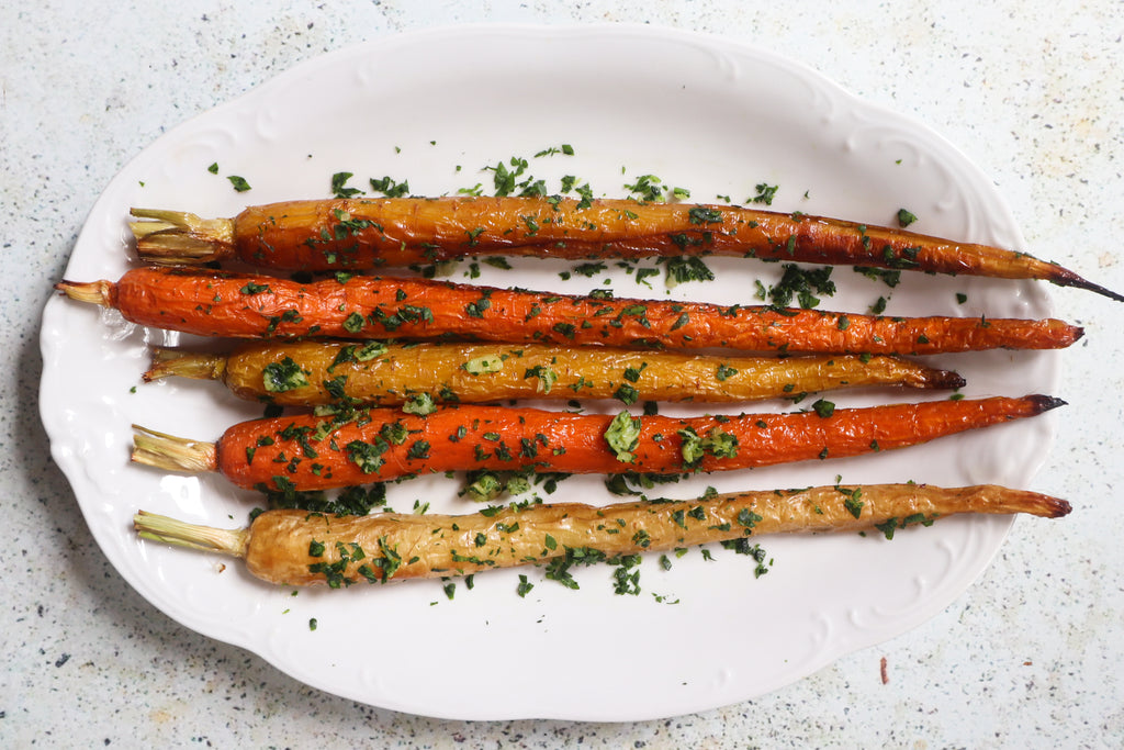 Sprinkle the carrots generously with the gremolata. Season to taste with sea salt and pepper. Serve warm or at room temperature.