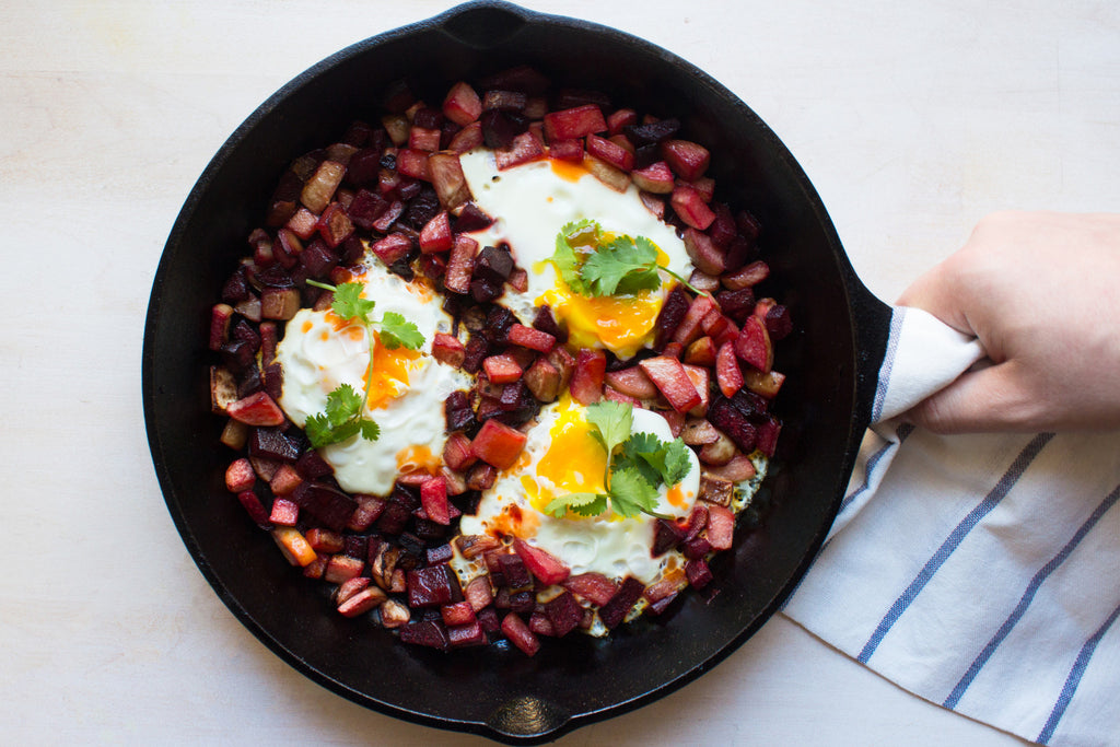 Ingredients:If you want your root vegetables peeled, do that first. Cube vegetables into ½ inch cubes. Toss cubed root vegetables with olive oil, rosemary, and salt and pepper. Heat a cast iron or ovenproof skillet over medium high heat. Add the root veggies to the skillet and let sit for a few minutes to allow to char before stirring. Let them sit again, then stir and place in the oven. Cook until the cubes are slightly under done 40 min.