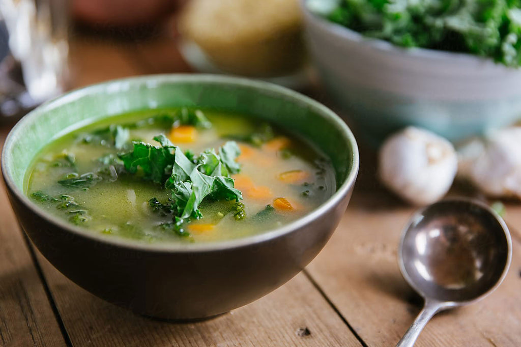 Add chicken to a large pot and fill with water until it is submerged at least 1 inch. Add 2 teaspoons sea salt and bring to a boil; then reduce to a simmer and cook, partially covered, for 30 minutes. Add onions, garlic, carrots and acorn squash and continue to simmer for another 40 minutes. Remove chicken from pot and shred the meat, using two forks. Add meat back in the pot along with the kale. Simmer until kale is wilted, about 10 minutes. Season soup with sea salt and pepper, to taste.