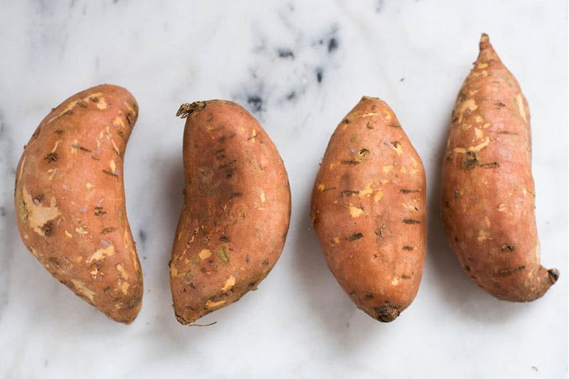 Cut sweet potato into 1-inch thick rounds. Toss with 1 tablespoon olive oil and space on baking sheet. Sprinkle with sea salt and pepper. Roast 20-25 minutes or until fork tender.