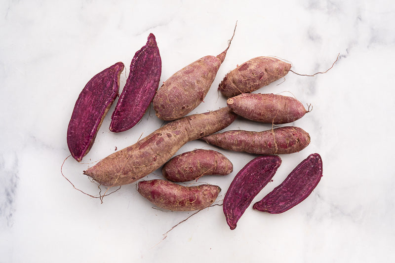 Bring medium pot salted water to boil. Add sweet fingerling potatoes and cook 15-20 minutes, until fork tender.