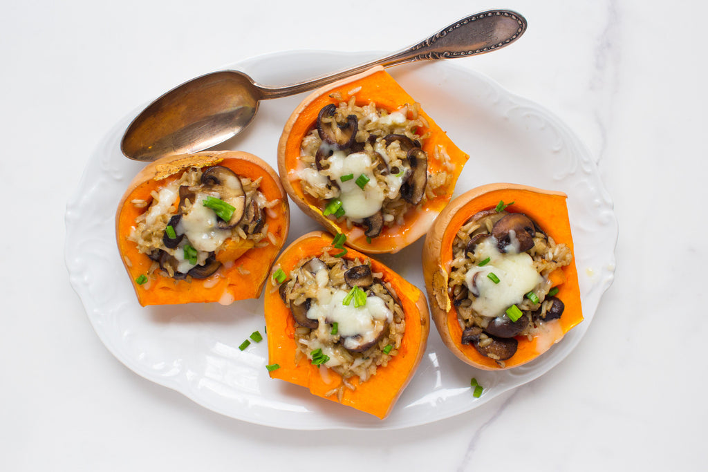 When squash cubes are fork tender, remove from oven and stir into the rice mixture. Use a spoon to fill squash “bowls” with the squash and rice. Return the filled squash to the oven and bake for another 30 minutes. Sprinkle remainder of grated cheese on top of the filled squash and bake for another 5 minutes or until cheese is melted. Serve on its own or with a side of Winter Rainbow salad mix, dressed with lemon juice and olive oil.