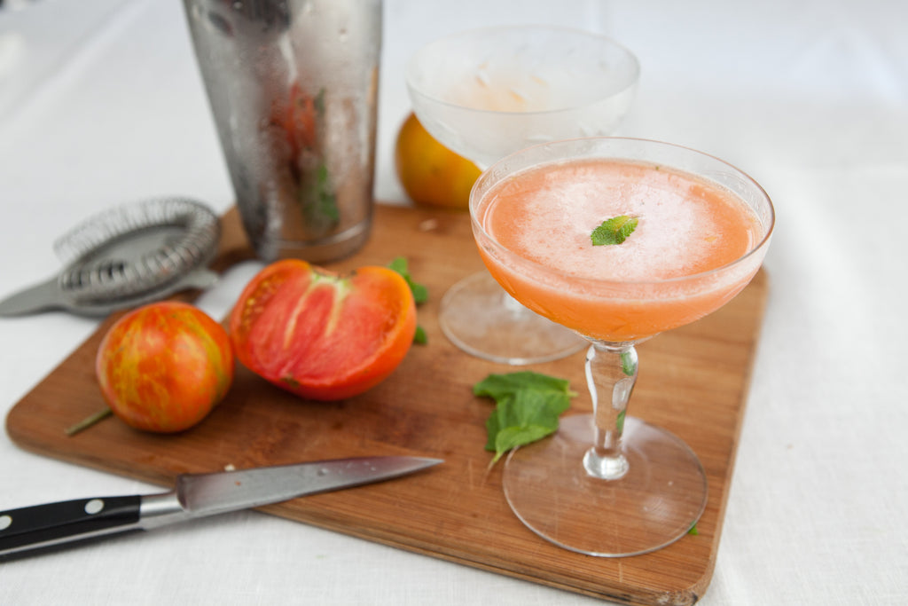Notes: The flavor of heirloom tomatoes vary; adjust the lemon and simple syrup according to the tomatoes on hand, and your own taste.