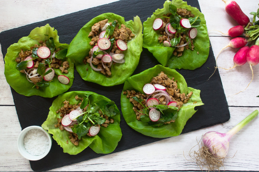 To serve, spoon several Tbsp. of the turkey mixture into the center of a lettuce leaf,