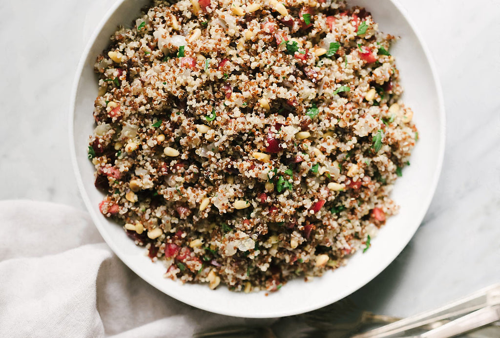Bring quinoa and water to boil in saucepan. Reduce heat to medium-low, cover, and simmer 10 to 15 minutes, until quinoa is tender and water has been absorbed. Set aside to cool.
