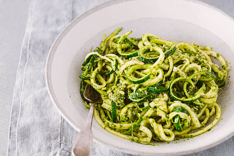 You’ll need a mandolin with a julienne attachment or a Japanese vegetable ribbon cutter to make this dish. In a pinch, use a vegetable peeler to create long thin strips of zucchini.